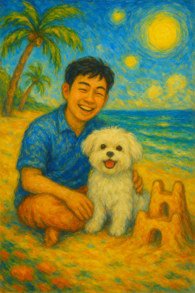 모래사장에서는 흰색 말티즈가 혼자 모래성을 쌓고 있었다. 하지만 뭔가 이상했다. 모래성을 쌓다가도 자꾸만 바다를 바라보며 한숨을 쉬고 있었다.