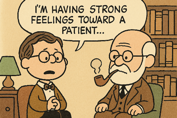 "환자를 분석하던 중 제가 환자에게 강한 감정을 느꼈습니다. 마치 제 어머니를 보는 것 같은... 이것은 환자가 저에게 느끼는 전이와는 반대인 것 같습니다."