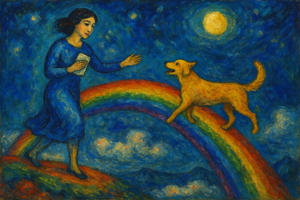 하린아, 나와 함께 올래? 강아지별에서 기다리고 있을게. 무지개다리를 건너오면 돼. 하지만 기억해, 이건 영원한 여행이 아니야. 너는 결국 돌아가야 해. 우리의 이야기를 들려주기 위해서.
