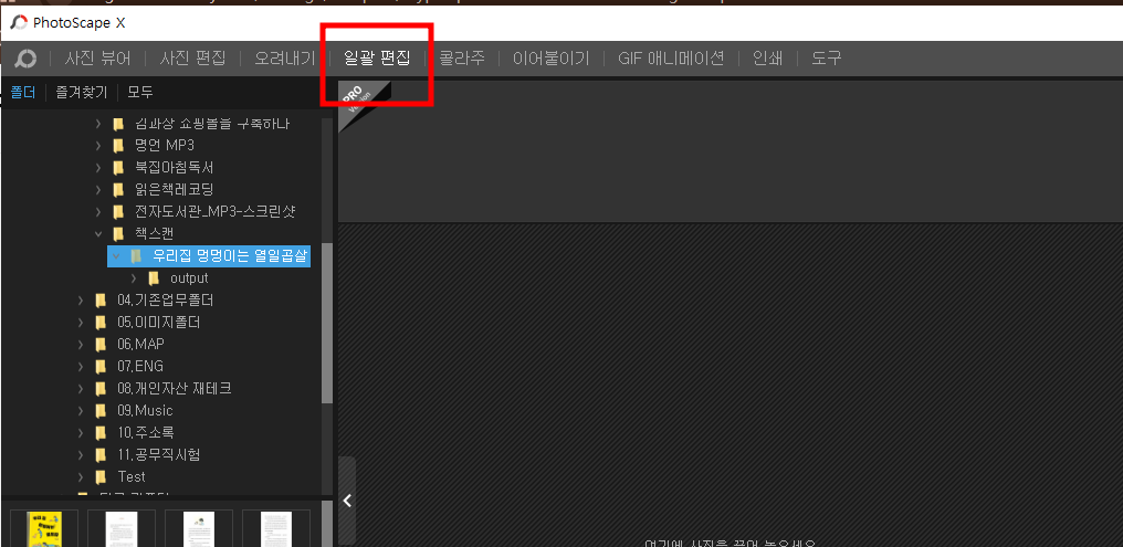 - 포토스케이프를 실행하고, 메인 메뉴에서 ‘일괄 편집’을 클릭해주세요.